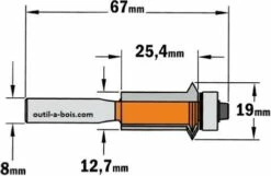 Cet arbre porte fraise CMT est livré avec des bagues de remplissage. Son alésage de 8mm permet de l’utiliser avec les fraises disques de la série référence : 822.