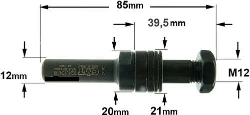 Cet arbre porte fraise CMT est livré avec des bagues de remplissage, FILETAGE DE 12MM POUR FRAISE 822.020.11
