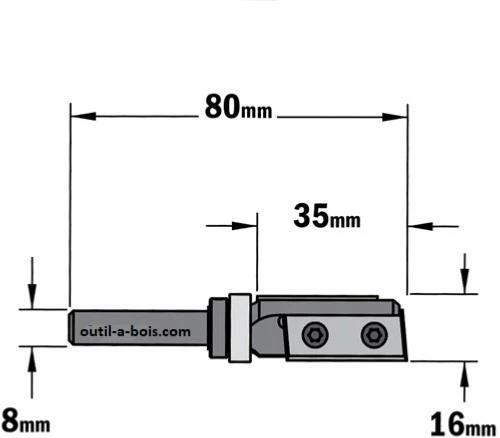 FRAISE cmt à plaquettes pour affleurer diamètre 16mm, queue de 8mm