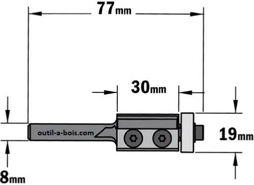 FRAISE cmt à plaquettes pour affleurer diamètre 19mm, queue de 8mm