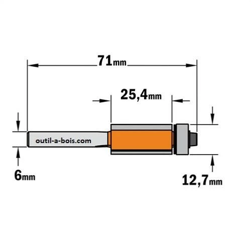 Cette fraise CMT à affleurer est indispensable pour affleurer les stratifiés et laminés. Elle peut également être utilisé pour les travaux de copiage. Elle a un diamètre de 12.7mm et une longueur de coupe de 25.4mm.