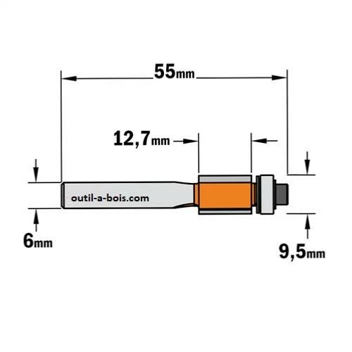 Cette fraise CMT à affleurer est indispensable pour affleurer les stratifiés et laminés. Elle peut également être utilisé pour les travaux de copiage. Elle a un diamètre de 9.5mm et une longueur de coupe de 12.7mm.