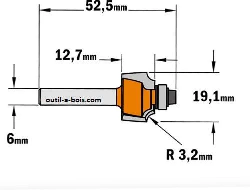 FRAISE CMT à quart de rond rayon 3.2mm, queue de 6mm avec roulement.