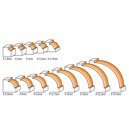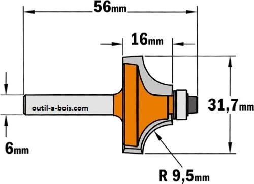 FRAISE CMT à quart de rond rayon 9.5mm, queue de 6mm avec roulement.