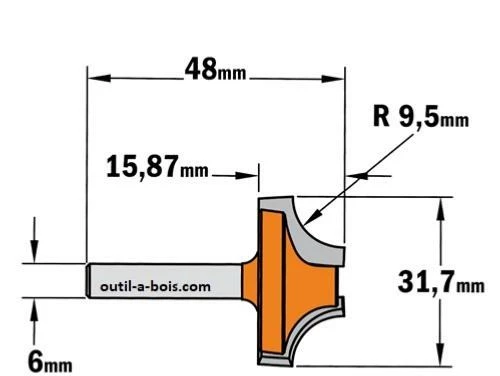FRAISE CMT à quart de rond rayon 9.5mm, queue de 6mm.