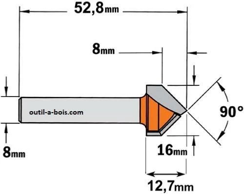 FRAISE À GRAVER CMT A 90° QUEUE DE 8MM.