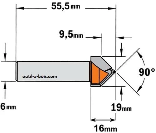 FRAISE À GRAVER CMT A 90° QUEUE DE 6 MM.