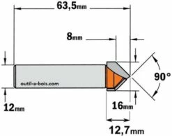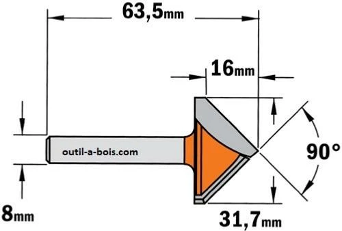 FRAISE À GRAVER CMT A 90° QUEUE DE 8MM.